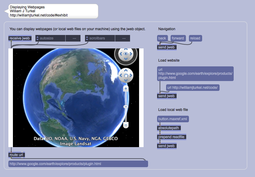 Finally, it is also possible to interactively manipulate 3D models that you design in another program (like SketchUp). To be used in Max, the model has to be exported in DAE format. The following patch gives some idea of the possibilities, which are extensive. The raw code link is here.