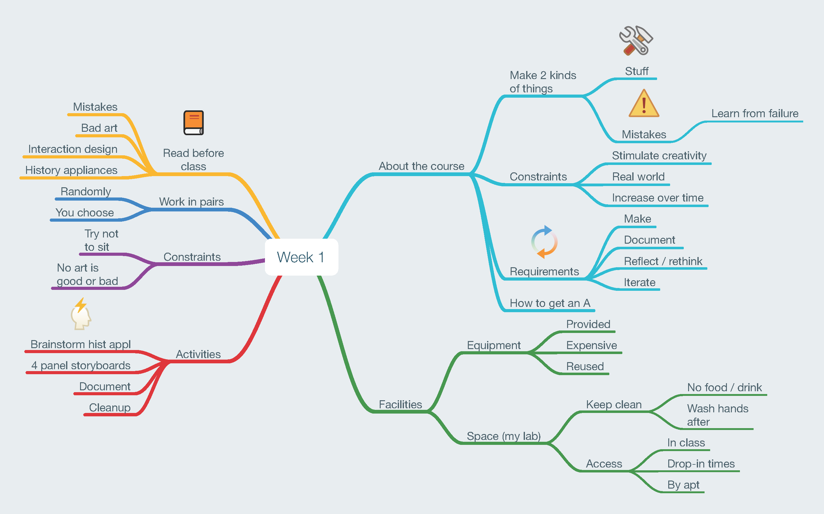 In this course you will be graded on your documentation of the design process (25%), the project(s) that you develop (50%), and your presentations in multiple media (25%). Your final grade will reflect how much you’ve learned or accomplished in this course, rather than any overall level of technical attainment.